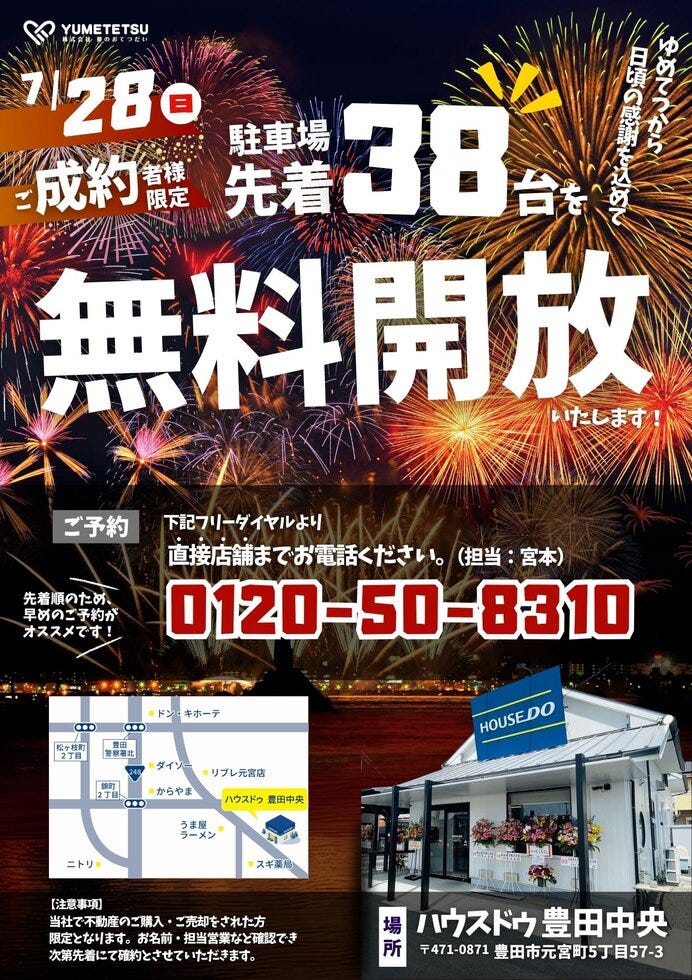 \夢のおてつだいご成約者様限定/おいでん花火駐車場無料開放♪
