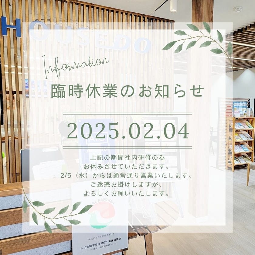 ◆◇2月4日 臨時休業のお知らせ◇◆