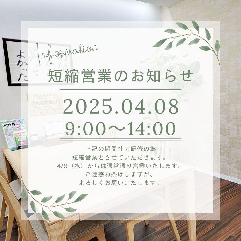 ◆◇4月8日 短縮営業のお知らせ◇◆